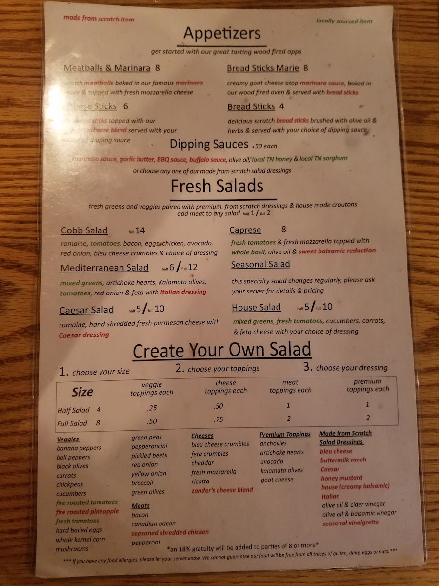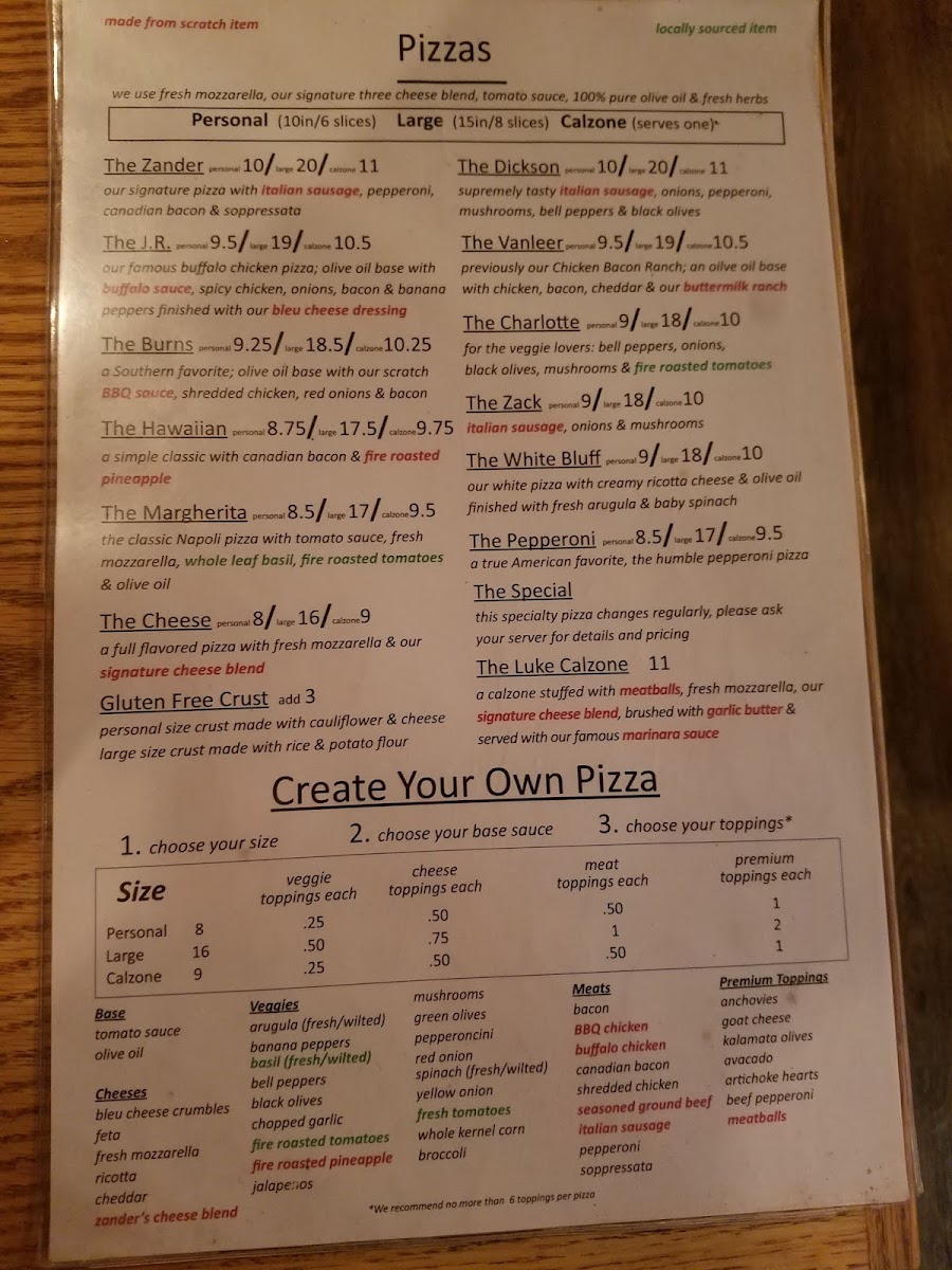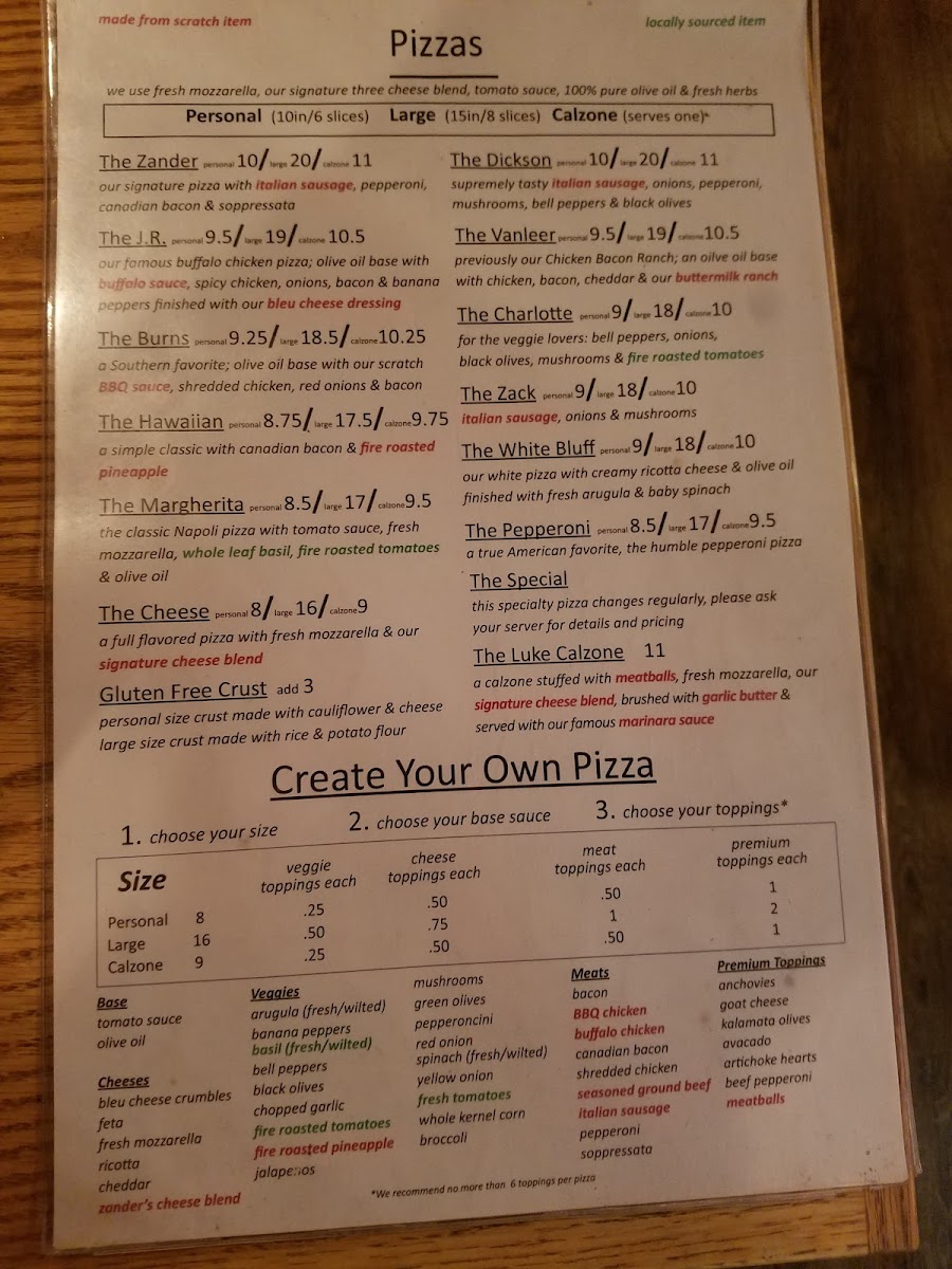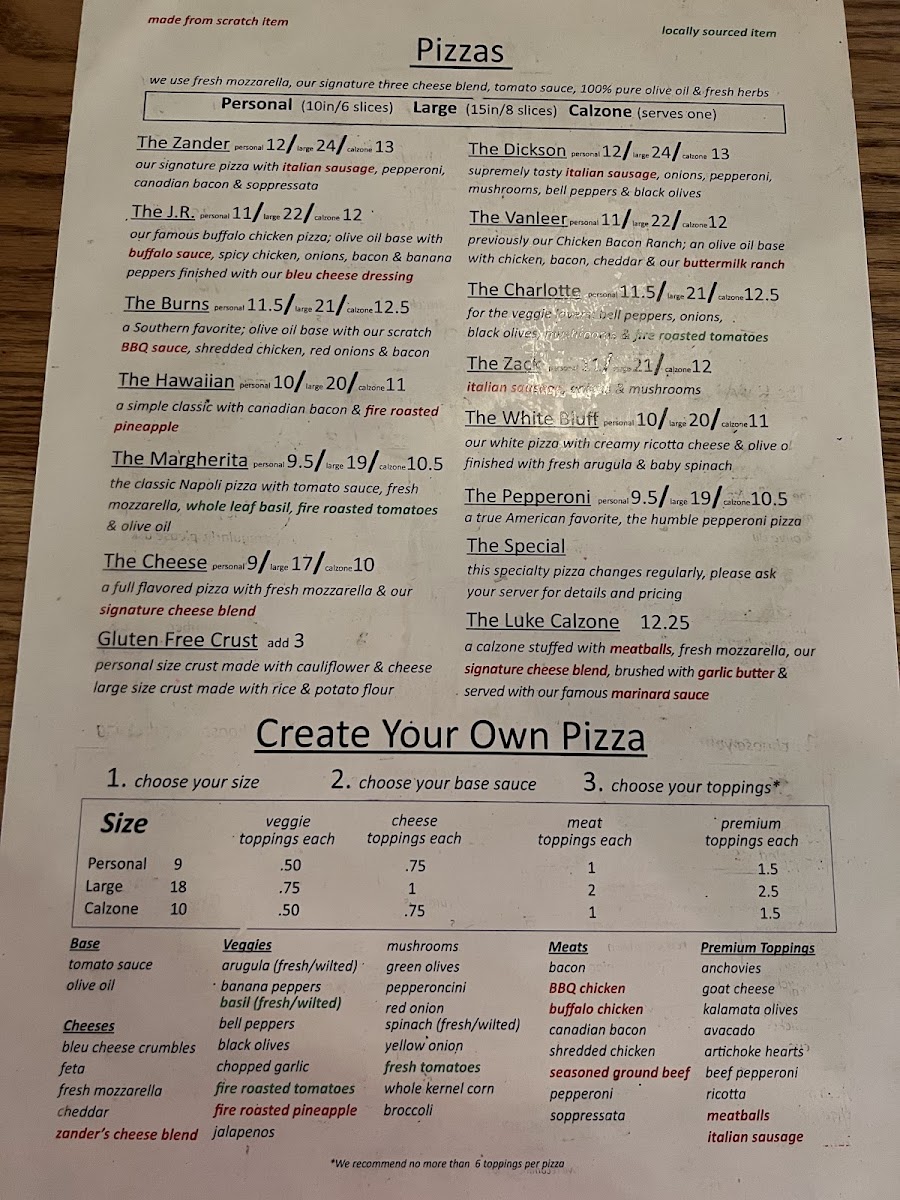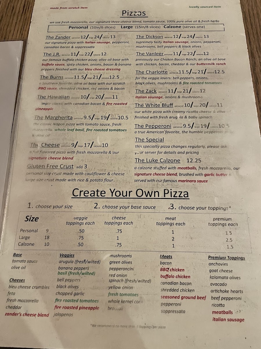 Welcome to Zander's Woodfired Pizza, where artisanal quality meets rustic charm in Dickson, TN. Nestled at 123 N Main St, this inviting pizzeria specializes in woodfired pizzas crafted with fresh ingredients that elevate each bite. The menu boasts 15” large pizzas, including the crowd-pleasing Zander Large with a delightful medley of homemade Italian sausage, pepperoni, and soppressata.